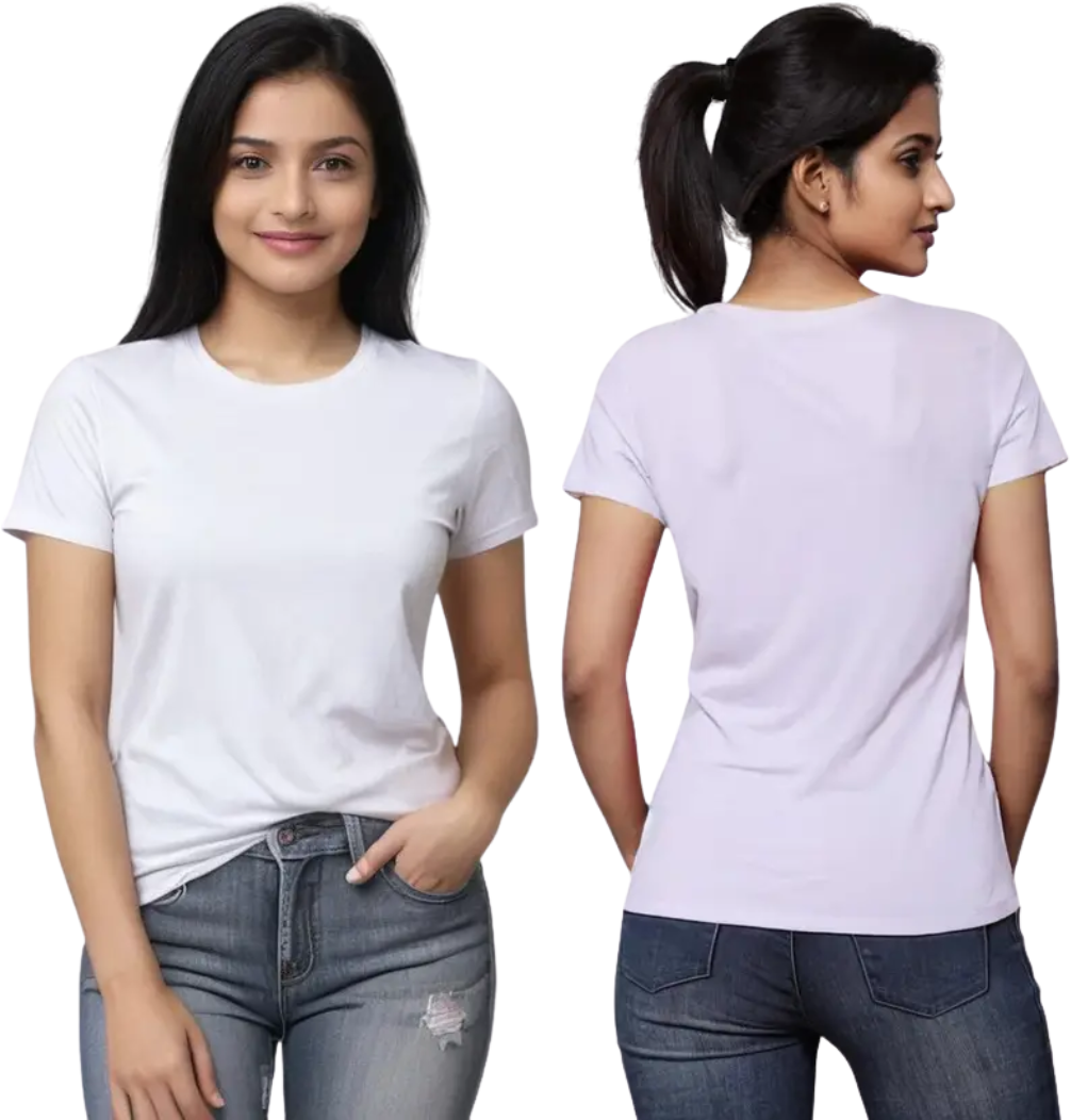 Pack of 2 Women Solid Round Neck Cotton Blend Multicolor T-Shirt
